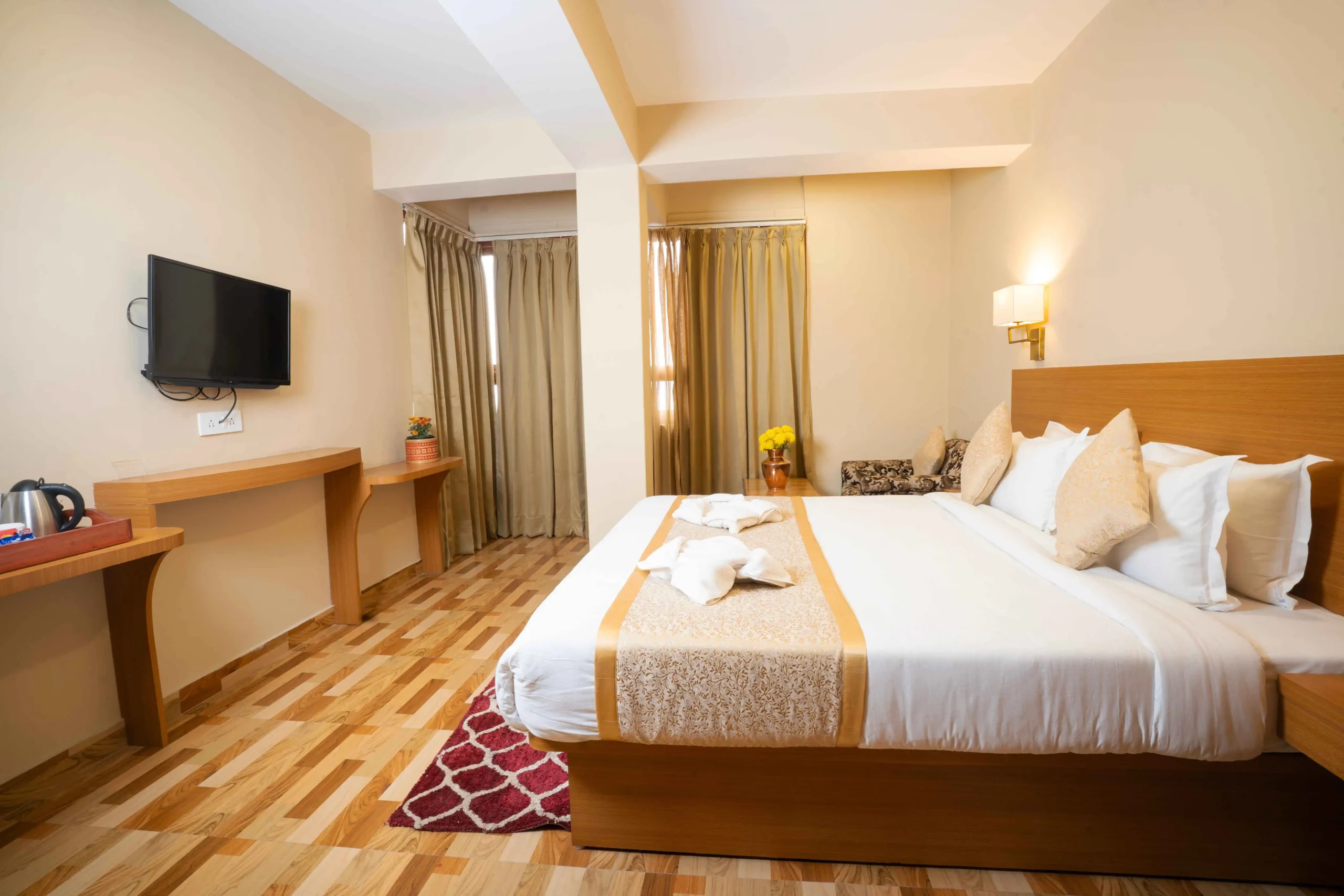 Step into refined comfort with the Super Deluxe Room, featuring premium interiors, enhanced amenities, and a sophisticated ambiance. Ideal for travelers seeking a premium experience with a touch of elegance.